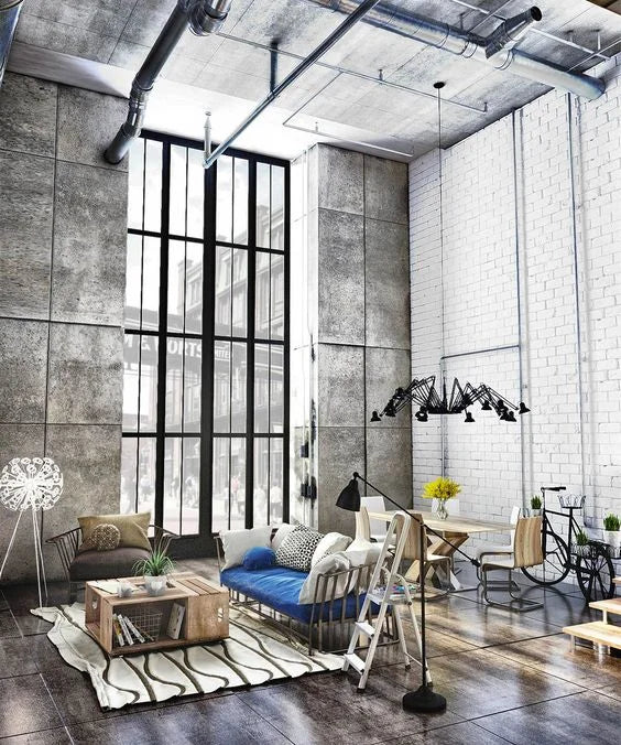- Use of materials like concrete, steel, and reclaimed wood