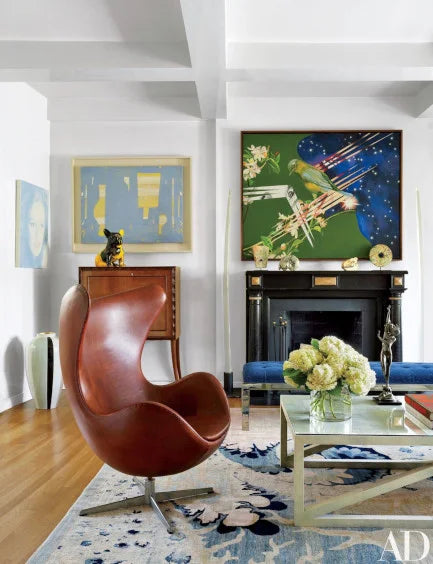 - A neutral color palette accented with bold, statement pieces